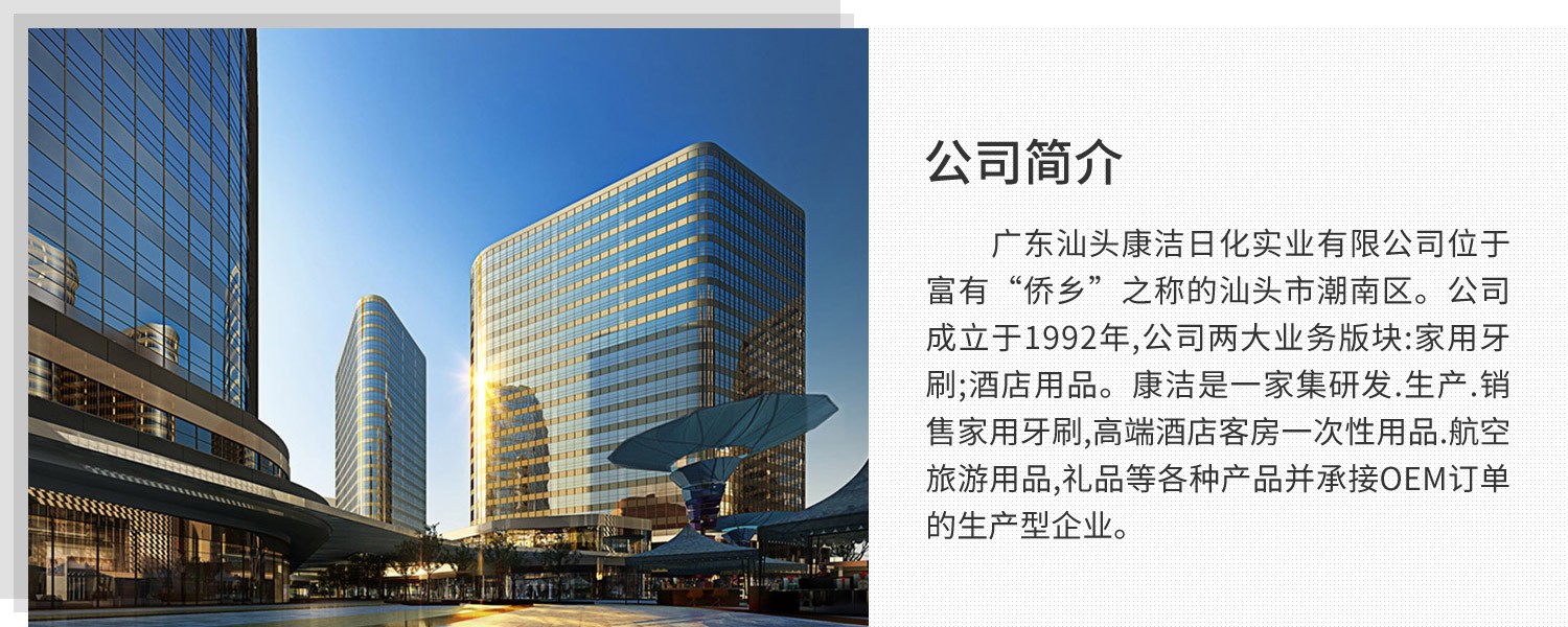 • 汕頭康潔日化實業有限公司是一家集研發.生產.銷售高端酒店客房一次性用品等各種產品并承接OEM訂單的生產型企業。